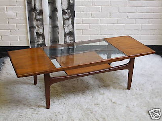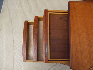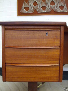 These pieces of teak furniture are so beautiful. I really love teak wood, it's warm coloured and smells lovely. These 50s and 60s shapes, with extra touches, like shelves and secret cabinets just make me fall in love with these.