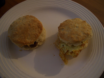 To make the sandwiches I just made my regular fluffy biscuits, but used a larger cutter to create large sandwich-sized biscuits.