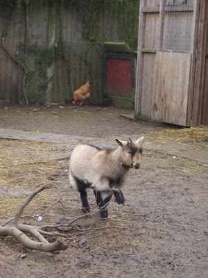 the goats didn't like to walk on the mud (can you blame them?) so they stuck to the flagstone paths in their fenced area. there was a branch they would go to and spend a long time scraping off their hooves. what clean goats!