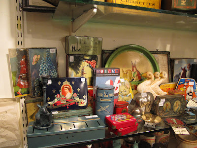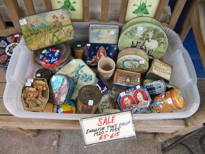 With the lovely weather we've started to have here in London, we have been putting some eye-catching vintage tins outside to draw people in... and a lot of the tins have been my own finds...