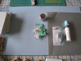 all I can say is that if you try this you should be imaginative and never think that your idea is too complicated.  We ended up going to two craft stores (AC Moore and Joanne Fabrics) and to Staples.  I had a general idea in mind before I went (blue background, photo on front, embellishes), but I didn't think about the possibility of ink stamps, and especially not embossing.