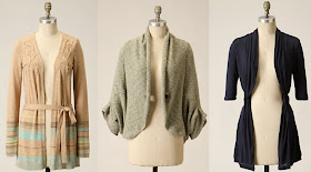 Second, lighter-weight cardigans, for not so cold days and layering. I don't know if I like the first because it reminds me of our roadtrip or because all the reviews say it's so much nicer in person, the second just looks like a wonderful warm cocoon (and I do look good in green, but have very little), and the last has an interesting shape but wouldn't be quite as versatile---