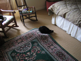 the big grey flannel duvet makes me want to jump into bed, and oh, those vibrant red rugs...