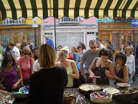 and finally, beautiful slightly mis-matched plates, bowls, and linens