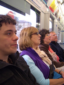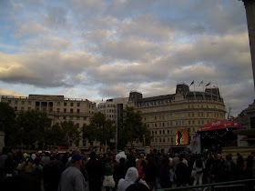 We got to see the changing over of the 4th Plinth 'One and Other'- as we watched we saw a man in a kilt going on and joked about who would win in a competition between a bagpiper and the Indian music playing on loudspeakers. Then he pulled a bagpipe out of his case!