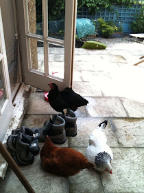Their hens really wanted to get indoors, so they have set up a chicken-gate to keep them and their poops out.