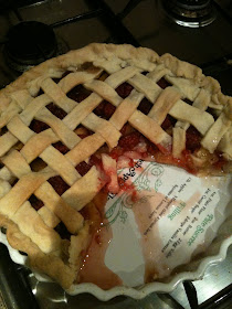 After playing with Mr. Tubby I came back and made peach raspberry pie for my dessert-needing friends. By the time it was out it was about 10pm. Late night pie.